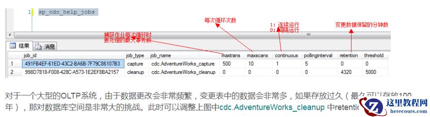 启用cdc之后会自动创建了两个作业,可以先使用以下语句来查看: