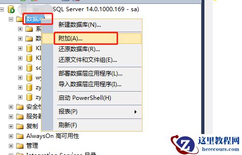 情况2:mdf,ldf数据文件还原。1、数据库->附加