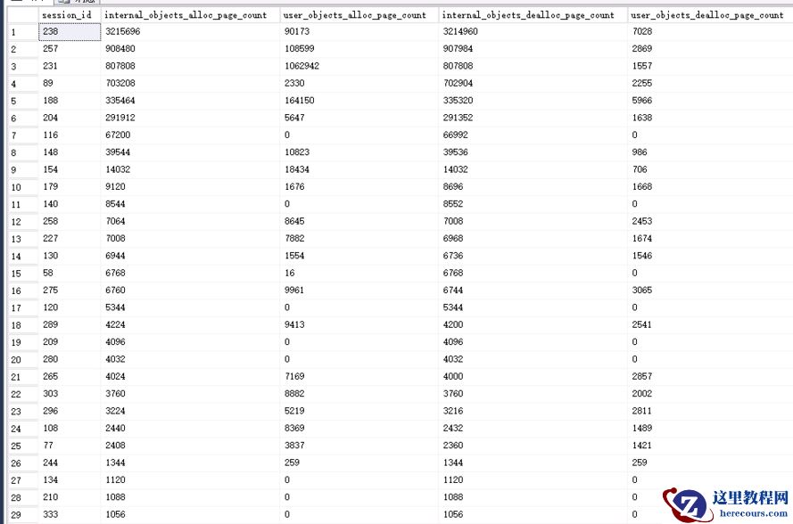 内部对象的使用量:SELECT top 10 t1.session_id, t1.internal_objects_alloc_page_count, t1.user_objects_alloc_page_count,t1.internal_objects_dealloc_page_count , t1.user_objects_dealloc_page_count,t3.login_name,t3.status,t3.total_elapsed_timefrom sys.dm_db_session_space_usage t1 inner join sys.dm_exec_sessions as t3 on t1.session_id = t3.session_id where (t1.internal_objects_alloc_page_count>0 or t1.user_objects_alloc_page_count >0or t1.internal_objects_dealloc_page_count>0 or t1.user_objects_dealloc_page_count>0)order by t1.internal_objects_alloc_page_count desc