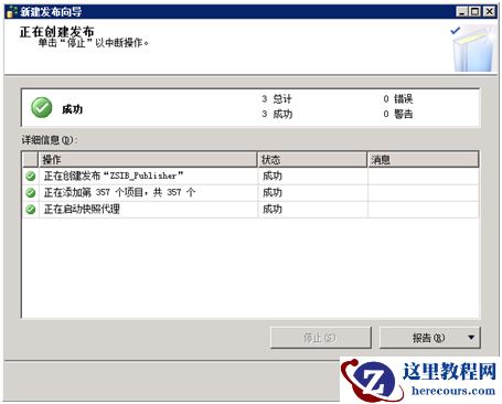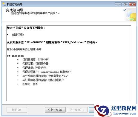 最后再点击确定,等待完成还原。 这样就保持了当前发布服务器和订阅服务器的一致。
