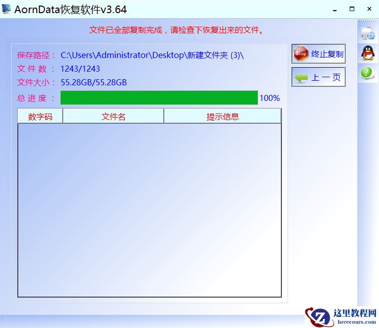 步骤2:程序找到文件后,会放到与要恢复盘卷标名相同的目录中