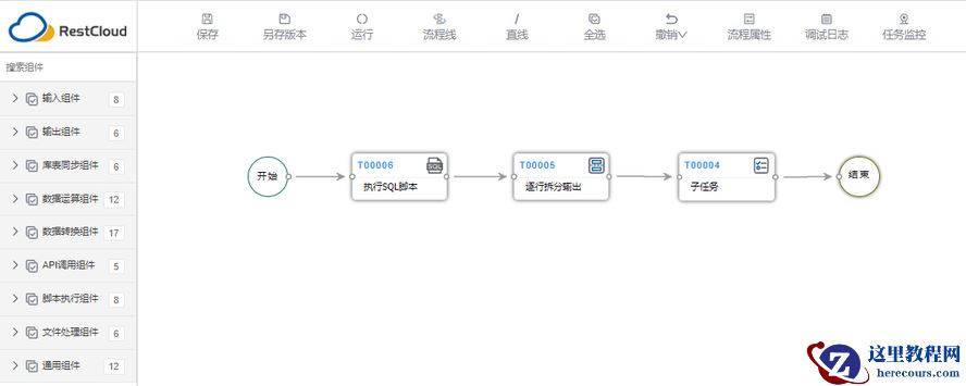 l Restcloud ETL 工具实现思路: 创建1个主流程、 1个子流程,主流程用于获取需要同步的分公司并作为变量参数,并逐个输出给子流程。子流程获取主流程的变量参数作为数据过滤条件及动态获取对应目标数据源。