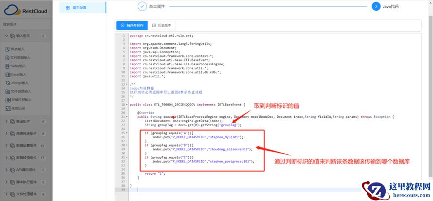 配置Java 代码:代码逻辑(通过判断输入的参数值获取对应同步的目标数据源)
