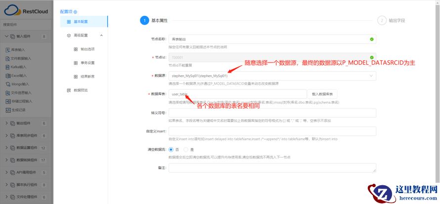 输出字段配置完成后,点击保存完成 【库表输出】配置。