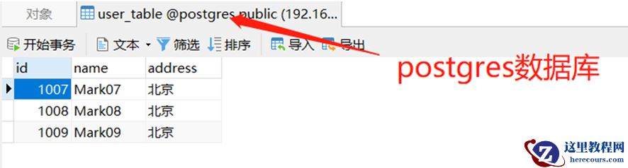 address 为“北京”的数据同步到 Postgres 数据库