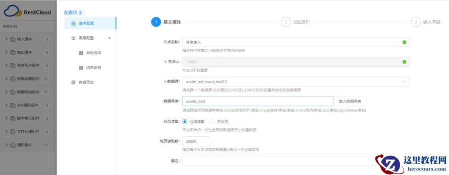 配置基本属性:指定读取源表的数据源
