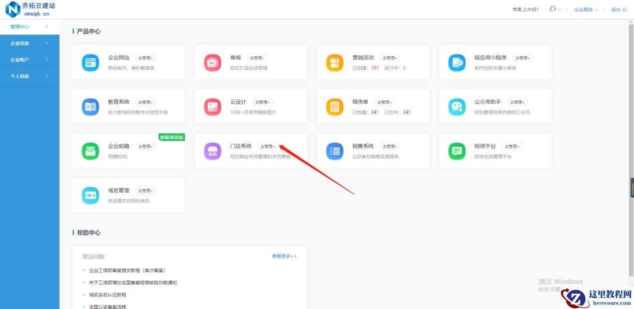 1. 进入乔拓云网,登录后台,点击【门店系统】进入门店系统后台管理页面。