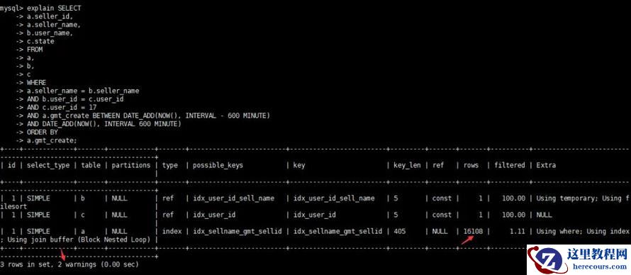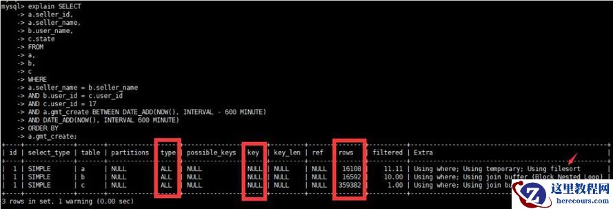 user_id 为varchar(50)类型,实际SQL用的int类型,存在隐式转换,也未添加索引。将b和c表user_id 字段改成int类型。user_id创建索引seller_name字段创建索引初步优化SQL