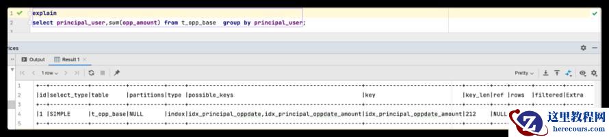 通过执行计划可以看到,执行时间从0.21s优化成了0.01s,执行时间近乎缩短20倍。查看优化后的执行计划