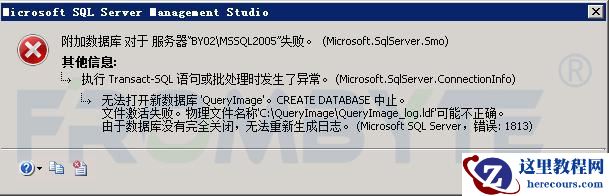 5、尝试附加数据库,报错 “处理数据库的日志时出错,如果可能请从备份还原。如果没有可用的备份,可能需要重新生成