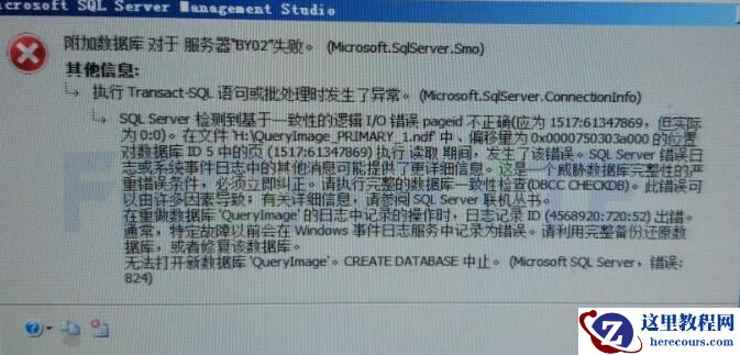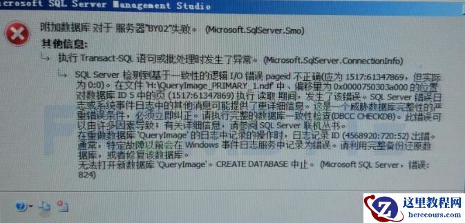 8、无日志附加数据库,报错数据库存在一致性错误。