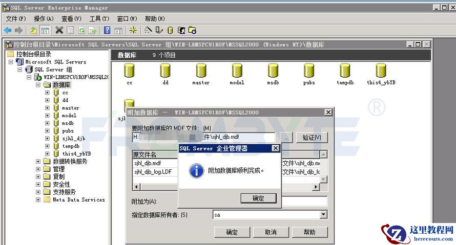 4、重新附加SQL Server数据库,附加数据库成功。