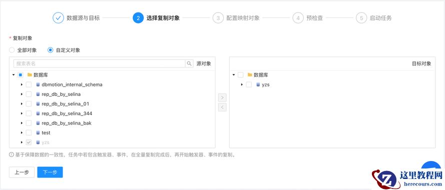 图二、配置任务的第二步骤,选择复制对象