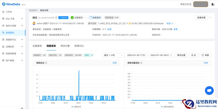 除了完善的功能外,NineData 的迁移性能也很优秀,用sysbench模型测试了下,它的全量迁移速度高达130MB/s,增量复制速度能达到10万+TPS。