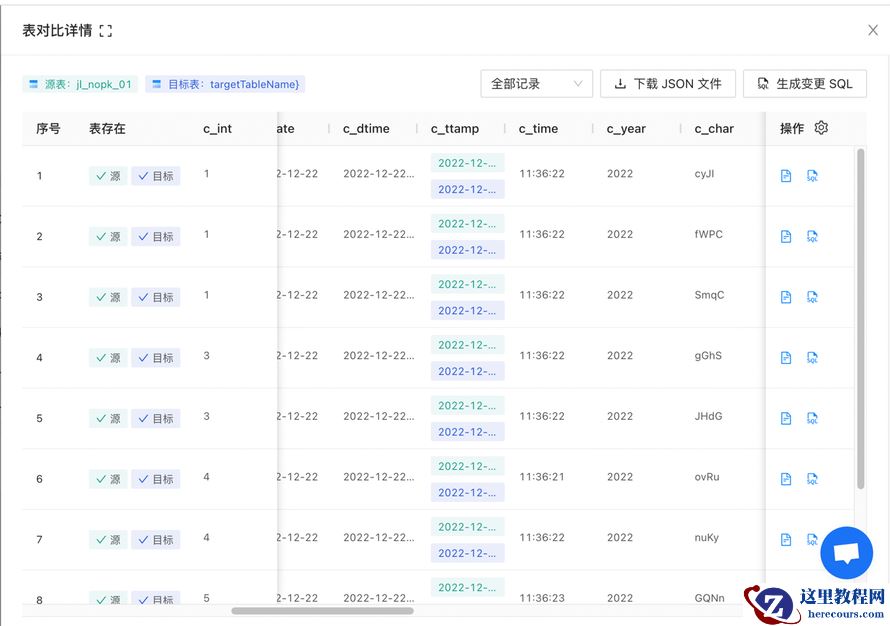 NineData复制任务的数据对比详情