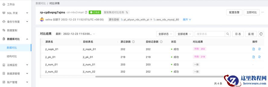 NineData复制任务的对比结果