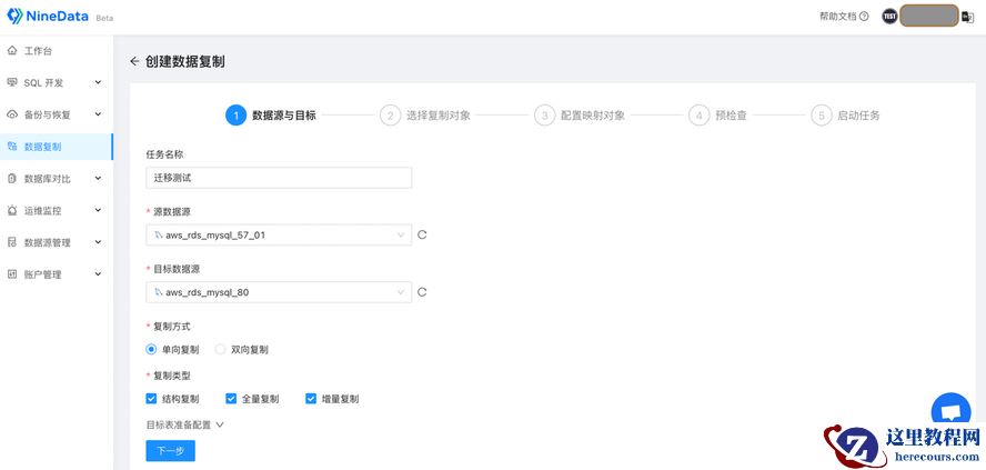 NineData选择迁移的数据源及迁移步骤
