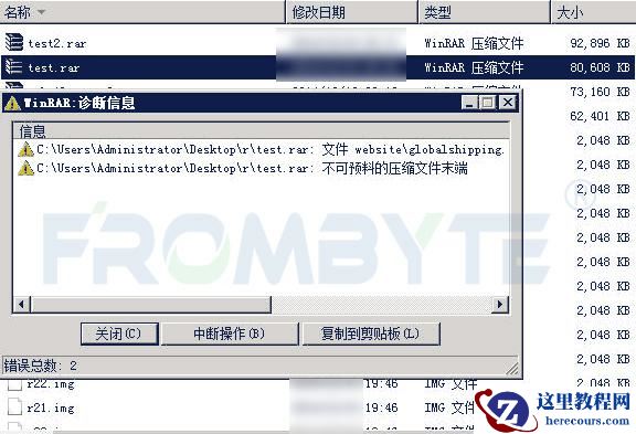 把相应的压缩包底层数据提取出来并重命名。但是在实际的恢复过程中却出现了意外,提取出来的压缩包解压时报错,报错