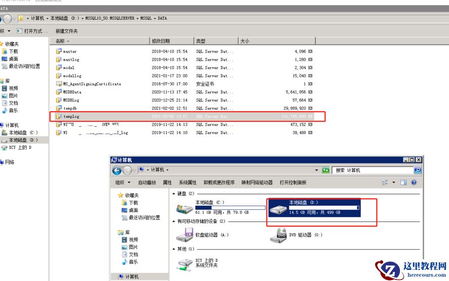 登陆到服务器里,确实看到了如上所说,D盘空间仅剩14.5G,并且tempdb的日志文件已经达到了130G。