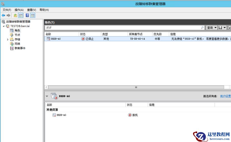 在14节点操作:ALTER AVAILABILITY GROUP [BRDB-AG] FORCE_FAILOVER_ALLOW_DATA_LOSS