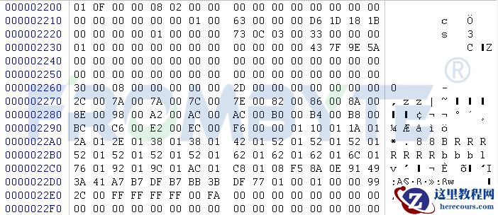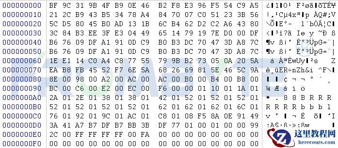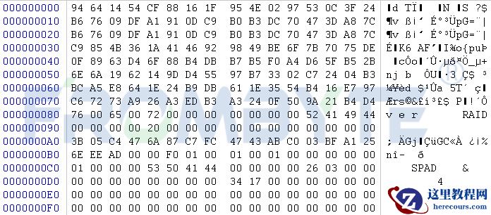 3、SQLServer数据库页大小8K,按8K大小切块向下查找,北亚企安数据恢复工程师经过分析,发现数据库加密规律:每128K进行一次加密,加密大小为128字节。数据库底层数据: