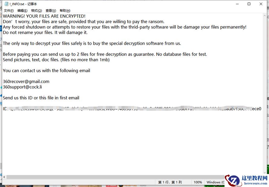 (2) 攻击表现,当企业计算机服务器被 360 后缀勒索病毒攻击后,企业计算机上的所有文件与软件均无法正常打开使用,并且所有文件的后缀名都会变成 360 ,并且还会在计算机桌面留下一封名为 !_INFO 的 txt 或 html 勒索信。