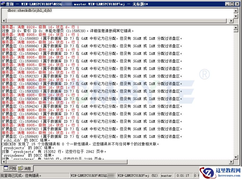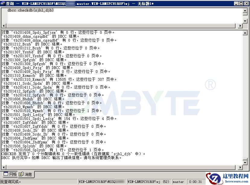 6、修复上述错误,再一次使用dbcc检测数据库。