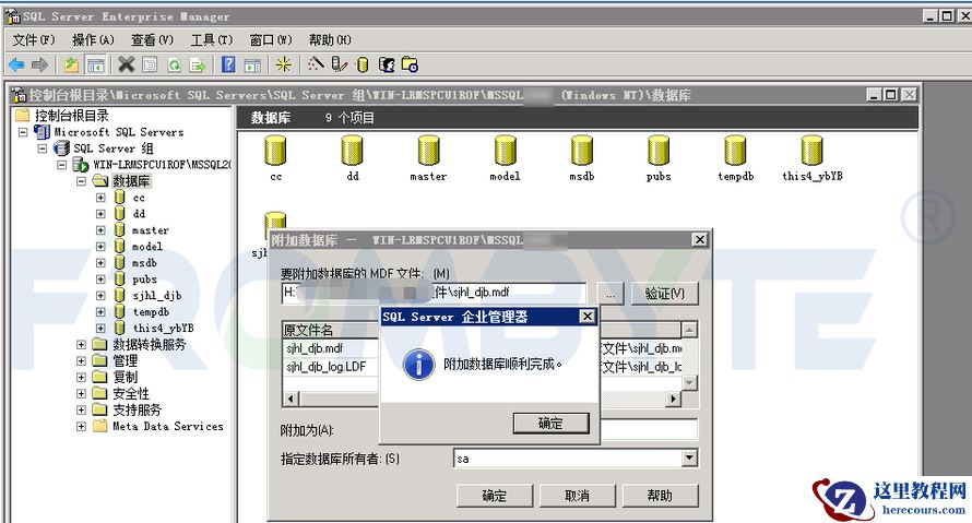 SQL Server数据库数据恢复过程:1、尝试通过附加数据库修复数据库。附加数据库提示“错误 823”。