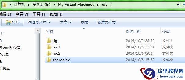 安装linux的环境,我就不介绍了,这一部分如果不会的童鞋就去百度吧,一百度一大堆,如果还是不会的话就直接下载我已经安装好的系统吧,下载下来直接可用(http://yunpan.cn/cgkEsf8wpHC2G (提取码:90f5)),复制3份,直接命名为rac1、rac2和dg即可,如图: