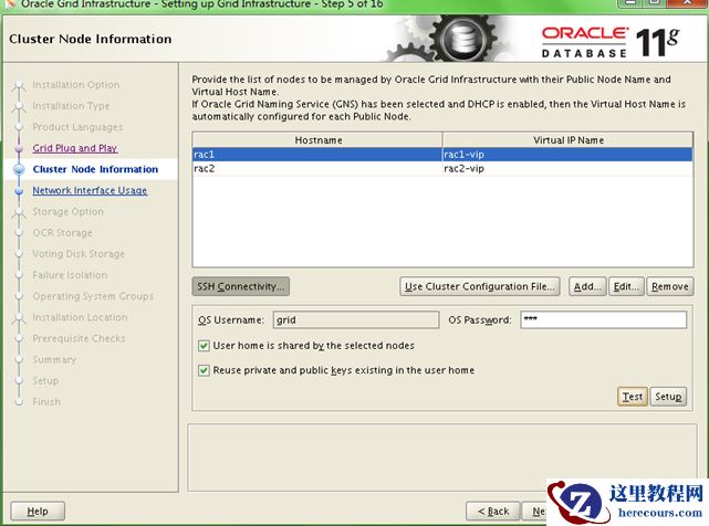为grid用户配置SSH: