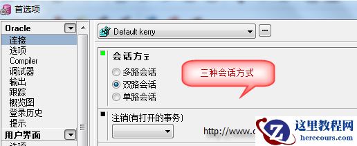 PL/SQL Developer工具——>首选项——>连接下,你可以设置会话方式,如下图所示: