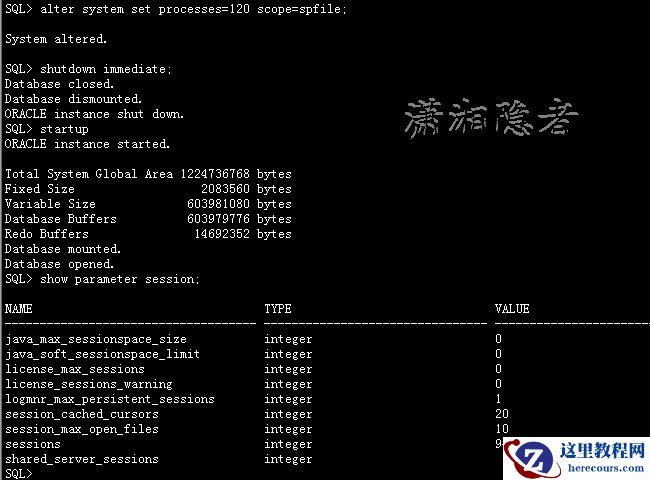 850改为120后,重启数据库实例,发现sessions的值并没有随之变化。这个现象一般发生在改小processes参数。为什么这样呢?