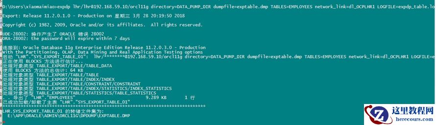 这边的 expdp 倒出一定是要本地的数据库,也就是目标数据库的用户 和服务名