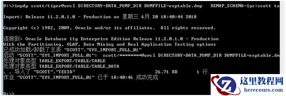 或者是基于用户的倒入:去掉这个TABLES=lyz.TESTA,但是也是 lyz 用户到 scott用户