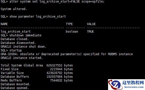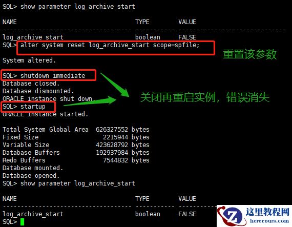 检查告警日志,发现已经废弃的参数log_archive_start值为true