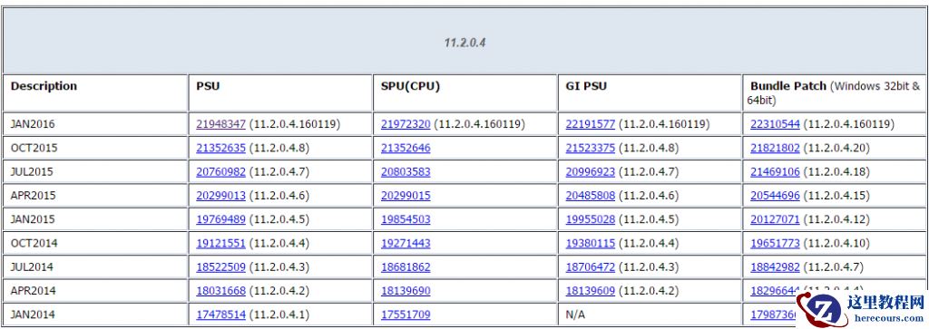 说到补丁分析,你首先会想到的肯定是这个文档:Quick Reference to Patch Numbers for Database PSU, SPU(CPU), Bundle Patches and Patchsets (Doc ID 1454618.1) 。这个文档标识了从8.1.7.4到最新的12.1.0.2的所有补丁号,包括Patch set号,PSU号,GI PSU号,SPU号,Bundle Patch号,OJVM Patch号。很多时候,客户问我,我要打11.2.0.4.5的PSU,这个补丁号是多少,我往往会推荐这个文档。
