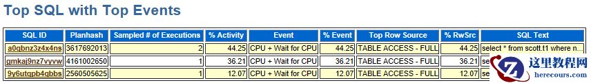 根据查看 SQL ordered by CPU Time ,可观察出相应时间段的高 CPU 消耗 SQL