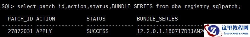 select patch_id,action,status,BUNDLE_SERIES from dba_registry_sqlpatch;