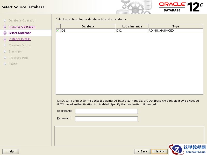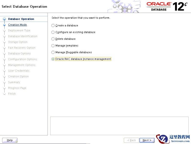 同样在节点1上运行dbca,在操作类型里选择Oracle RAC database Instance management: