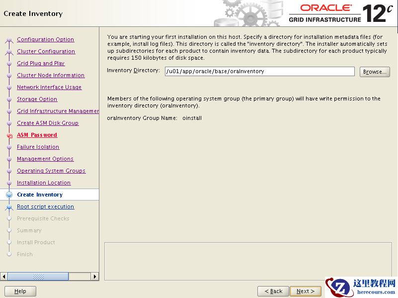 这里只要配置Oracle base的路径就可以了。然后配置inventory的路径:
