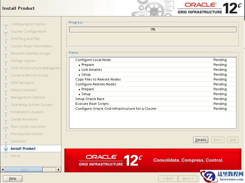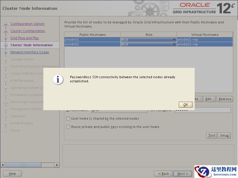 下一步安装程序会检查磁盘组的容量是否满足需求,如果容量不满足即报错,无法进行后续的步骤。所以在开始规划时OCR的磁盘要分配大一些。