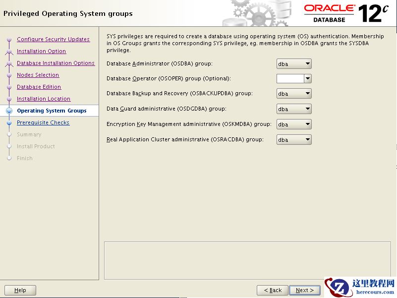 相比grid,database的安装基本上没多大的变化。这里我们只安装数据库软件,建库的操作放到后面进行。可能唯一的变化是系统用户组的选择,多了好几个: