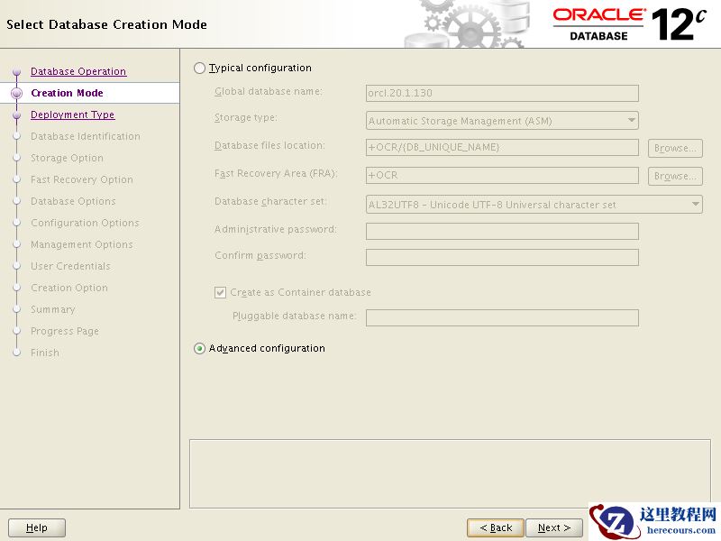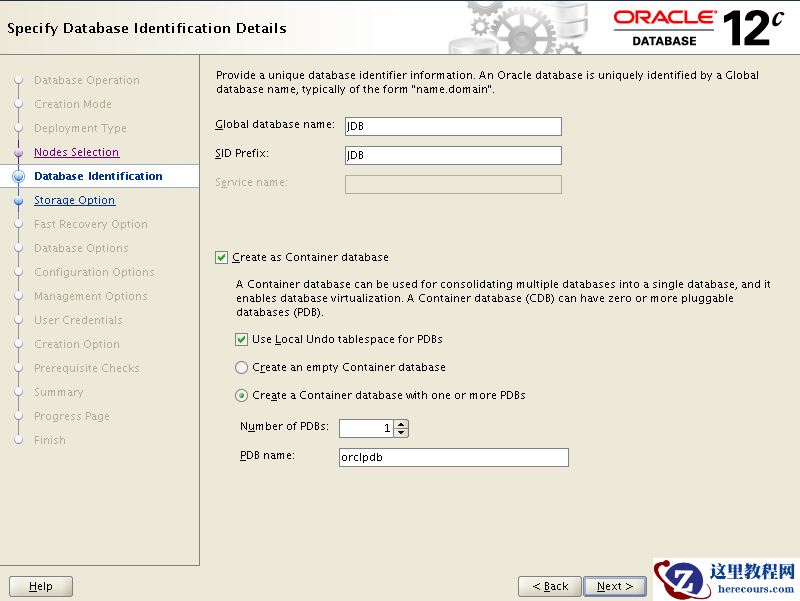 3、数据库的类型,是CDB还是non-CDB,需要根据实际需求来选择。这里选择CDB类型,并创建一个PDB