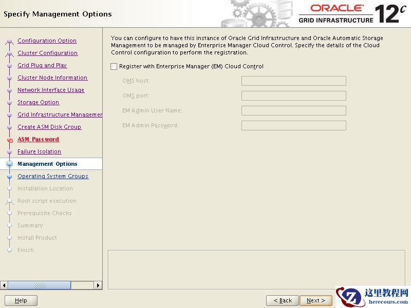配置EM。如果组织里使用EM进行管理的可以进行配置。然后下一步配置用户组和软件路径: