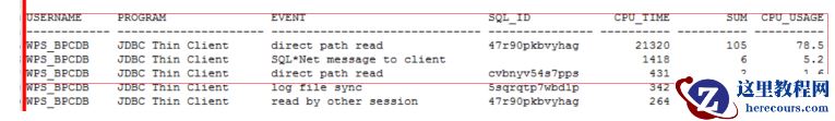 60到120秒不等,其中CPU时间在10到20秒不等,这说明语句在执行时,有80%的时间用于等待上,但是语句没有产生物理读取,结合会话的等待事件,我们可以知道80%的时间都消耗在了GC的相关等待上(GC相关等待会导致CPU sys使用偏高)。