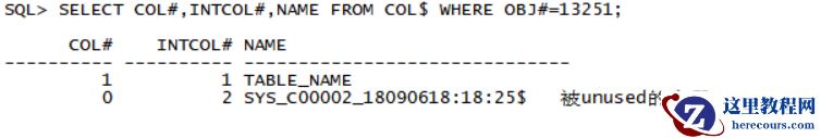SQL> SELECT COL#,INTCOL#,NAME FROM COL$ WHERE OBJ#=13251;