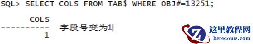 SQL> UPDATE TAB$ SET COLS=COLS+1 WHERE OBJ#=13251;