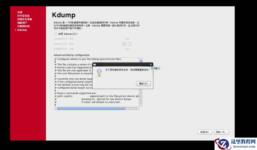kdump如果内存大可以开启。这里不开启了,具体作用这里不做介绍了。
