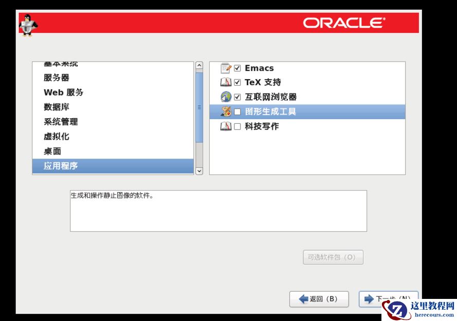 应用程序选择Emacs、Tex支持、互联网浏览器;