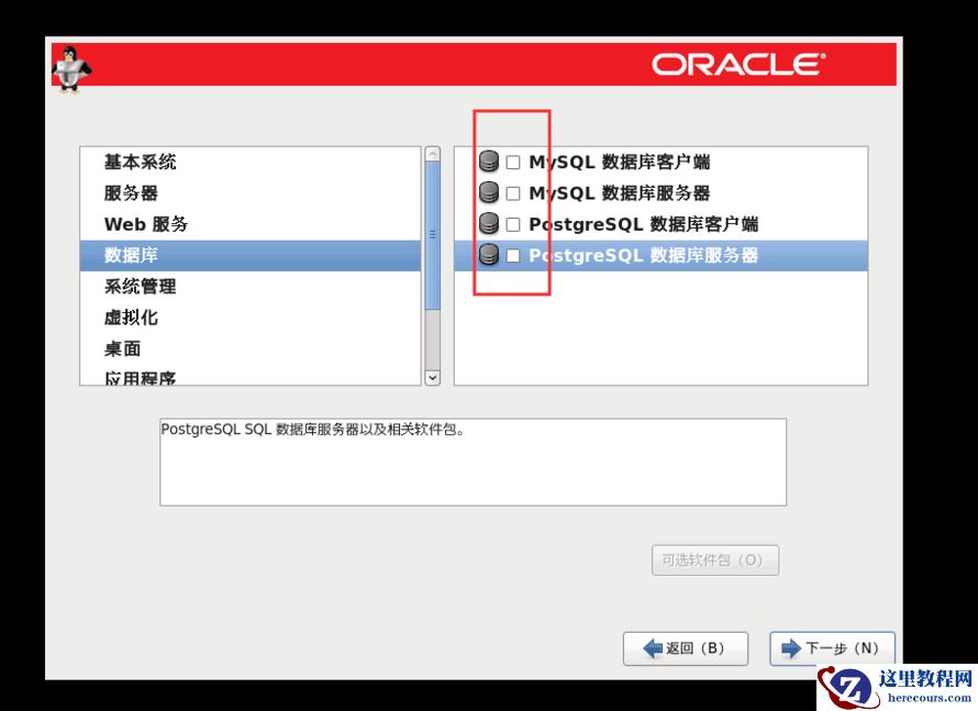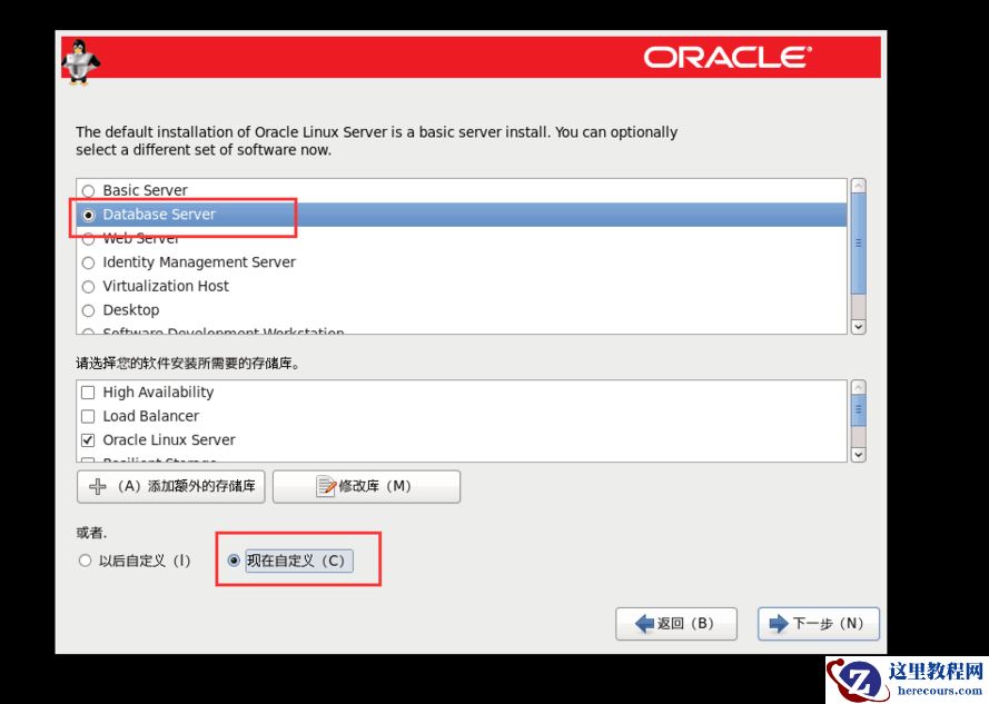 16、选择Database Server,下方选择现在自定义,如图标红的方框,下一步。
